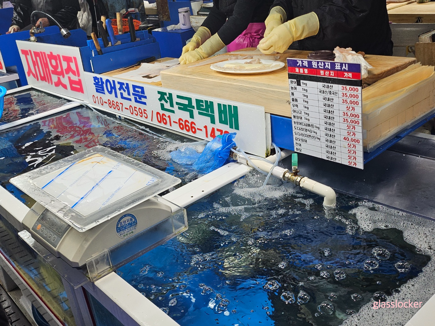 여수 수산시장 - 광어회 포장