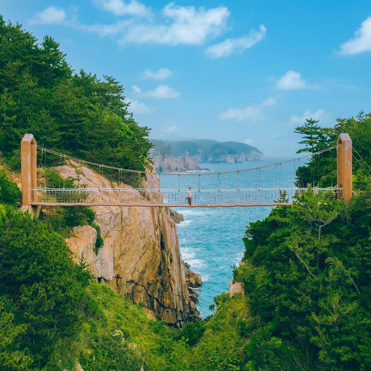 욕지도 1,2,3 출렁다리에서 내려다보면 에메랄드빛의 통영바다를 감상할 수 있습니다.