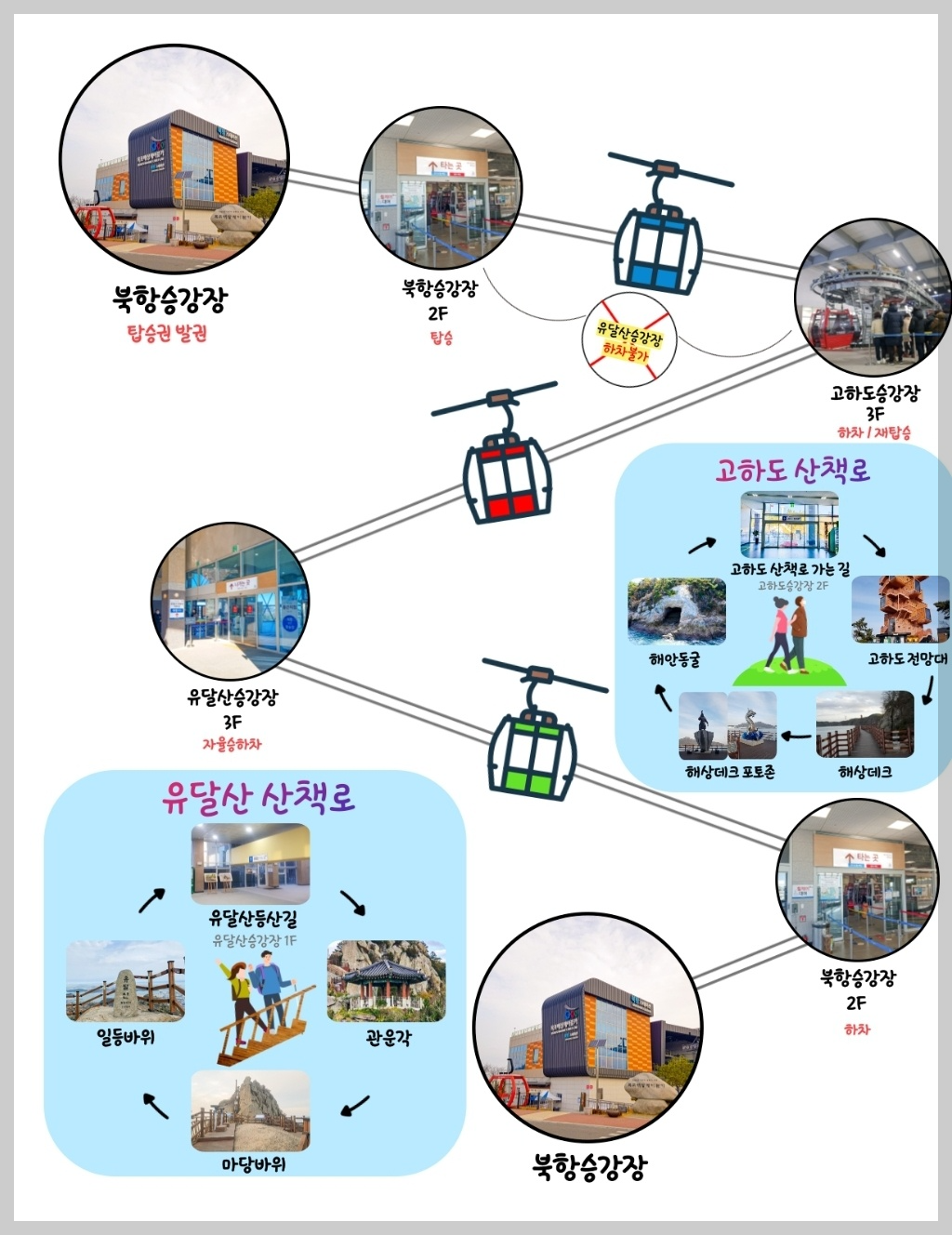 ✅ 장소 : 북항 승강장(전라남도 목포시 해양대학로 240), 고하도 승강장(전라남도 목포시 고하도안길 186) 유달산 승강장 - 등산객 전용(전남 목포시 죽교동 산39-29 ) ✅ 주차정보 : 북항, 고하도 승강장 주차(케이블카 이용시 3시간 무료),유달산 승강장(차량진입 불가, 주차장없음) ✅ 문의 : 061-244-2600 |