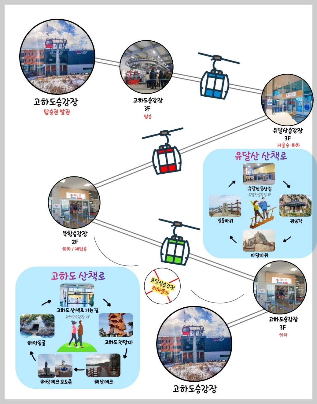 | ✅ 장소 : 북항 승강장(전라남도 목포시 해양대학로 240), 고하도 승강장(전라남도 목포시 고하도안길 186) 유달산 승강장 - 등산객 전용(전남 목포시 죽교동 산39-29 ) ✅ 주차정보 : 북항, 고하도 승강장 주차(케이블카 이용시 3시간 무료),유달산 승강장(차량진입 불가, 주차장없음) ✅ 문의 : 061-244-2600 |