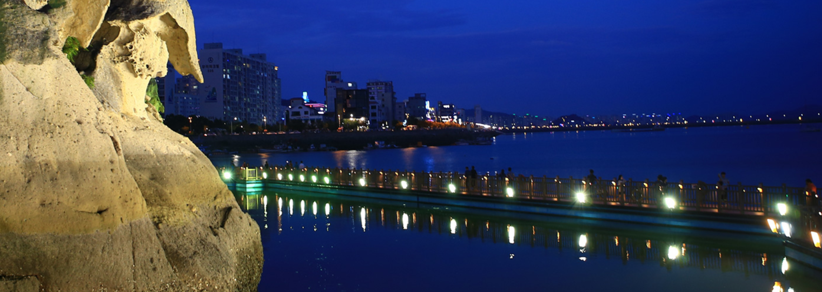 예전에는 배를 타고 나가야만 볼 수 있었던 갓바위를 해상에서 직접 조망할 수 있는 보행교를 바다 위에 설치하여 배를 타지 않아도 다리를 건너며 야경을 감상할 수 있게 되었습니다.