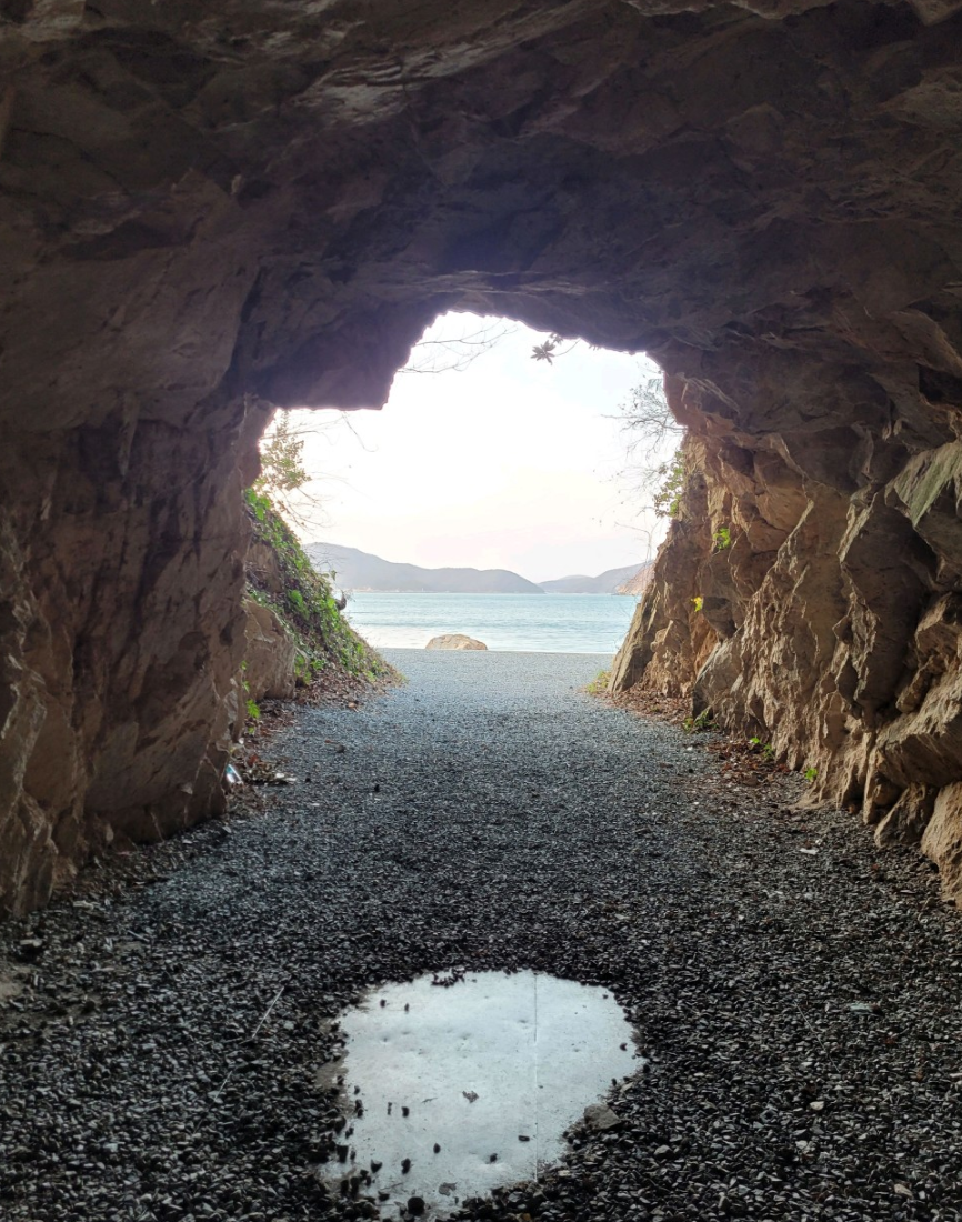 거제시 남부면 근포마을 뒤편에 위치한 5개의 땅굴 중 일부는 일제 강점기 때 일본군에 의해 파여졌으나, 1945년 해방 이후 중단되었다고 합니다. 이 중 쌍굴은 H자형으로 관통되어 있어 독특한 형태를 띠고 있습니다. 최근에는 인생사진 촬영 명소로 입소문이 나며, 노을이 질 무렵의 풍경은 특히 아름답다고 합니다. 비가 온 뒤에는 바닥에 물이 고여 더욱 아름다운 풍경을 담을 수 있습니다. 해질 무렵의 역광을 이용한 실루엣 인물사진도 인상적입니다. 거제 여행 시 꼭 방문해보세요.