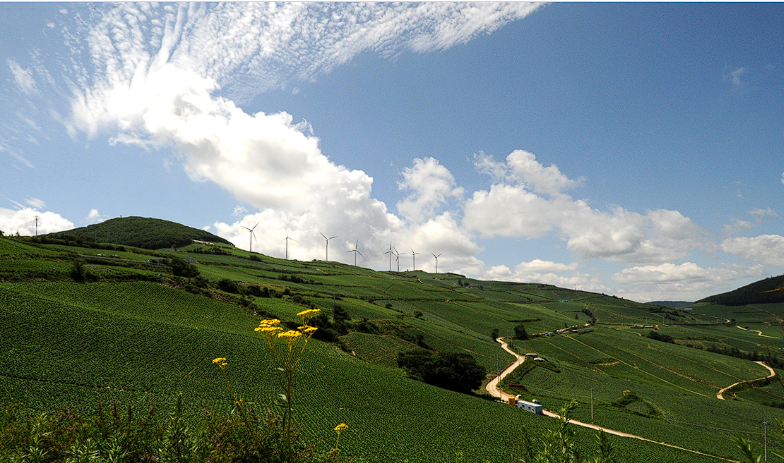 태백의 매봉산 풍력발전단지는 '바람의 언덕'이라는 별명으로 불리며, 이곳은 바람이 많이 불고 여러 대의 풍력발전기가 세워져 있습니다. 국도 제35호선과 가까이 위치해 있으며, 태백터미널에서 시내버스 13번을 타고 20~30분이면 도착할 수 있습니다. 매봉산 바람의 언덕은 일출과 운해를 감상할 수 있는 명소로 유명하며, 넓은 대지 위에 펼쳐진 푸른 배추밭이 아름답습니다. 매봉산은 백두대간에서 낙동정맥이 갈라지는 지점으로, '천의봉'이라는 이름으로도 알려져 있습니다. 정상에서는 132만㎡에 이르는 고랭지 배추밭이 펼쳐지며, 해발 1000m 이상의 귀네미마을에도 넓은 배추밭이 이어집니다. 이곳은 TV 프로그램 <1박 2일>에 소개되면서 더욱 유명해졌습니다.