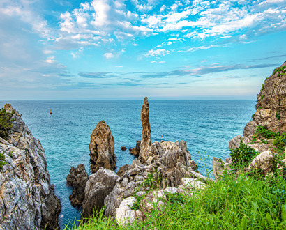 추암해변은 해안 절벽과 바위섬들이 어우러진 아름다운 풍경으로 유명하며, 부서지는 파도와 고운 백사장이 특히 눈길을 끕니다. 해금암의 웅장한 자연경관과 촛대바위의 서정적인 모습이 더해져 이곳의 풍경을 더욱 빛나게 합니다. 한국의 가볼 만한 곳 10선에 포함될 만큼 많은 이들에게 사랑받는 추암해변은 조용한 어촌마을의 정취와 여유로움을 함께 느낄 수 있어, 여름철 가족들과 함께 휴식을 취하기에 안성맞춤인 해수욕장입니다.