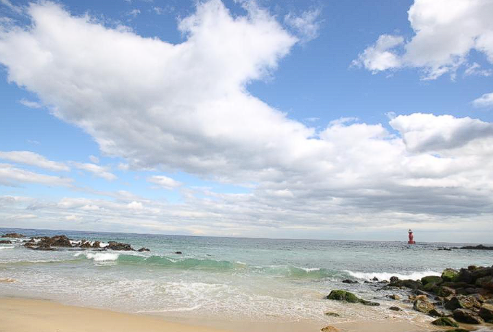 한섬해변은 동해시내와 가까워 접근성이 뛰어나 많은 관광객이 찾는 명소입니다. '한섬'이라는 이름에 걸맞게 언덕을 내려가면 해수욕장과 연결된 다리가 나타나며, 넓고 맑은 파란 바다와 하얀 백사장이 환상적으로 펼쳐집니다. 규모가 작아 전체 해변을 한눈에 볼 수 있는 이곳은 다른 유명 해변과는 달리 한적하고 조용한 분위기가 특징입니다. 이곳을 찾는 사람들은 여유롭게 바다를 즐기며, 울창한 송림과 기암괴석에 부딪히는 파도를 감상하거나 하얀 모래사장을 따라 산책을 즐깁니다. 특히 묵호등대가 보이는 아름다운 풍경이 이 해변의 매력을 한층 더해줍니다.