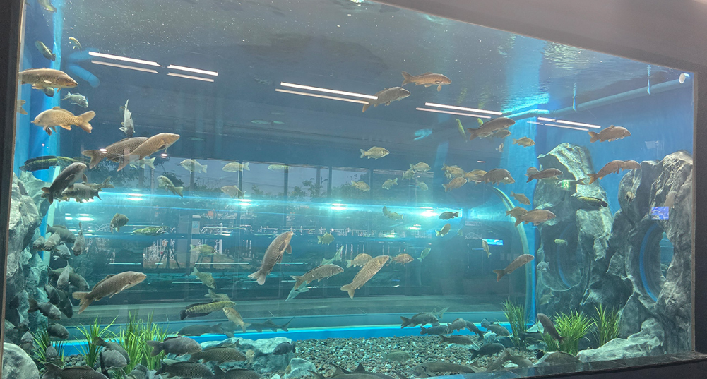2024년 5월 16일에 개장한 신상 아쿠아리움은 깔끔한 외관이 돋보이는 곳입니다. 이곳의 하이라이트는 '해저터널'로, 대형 수조에서 칠갑상어와 잉어 등을 가까이에서 감상하며 사진을 찍을 수 있어 아이들과 함께 방문하기에 좋습니다. 관람을 마친 후에는 무료로 네컷사진을 찍을 수 있는 기념촬영 공간도 마련되어 있어 추억을 남기기에 안성맞춤입니다.