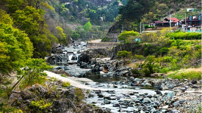 달산면 옥계계곡은 천연림으로 덮인 팔각산과 동대산의 기암절벽이 어우러져 만들어낸 깊은 계곡입니다. 맑고 투명한 물이 바위 틈을 지나 오십천으로 흘러내리며, 그 경치가 정말 아름답습니다. 기암괴석과 하얀 물보라가 장관을 이루어 방문객들의 마음을 사로잡습니다. 계곡 주변은 잘 정비된 등산로 덕분에 주말마다 많은 사람들이 찾으며, 야영을 즐기기에 최적의 장소로도 알려져 있습니다.