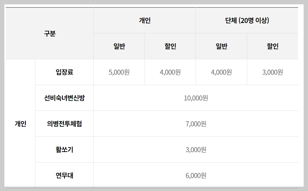 ✅ 한국문화테마파크 안내 / 자세한 안내 클릭 ⬅️⬅️ 주소 : 경북 안동시 도산면 월천길 300 문의 : 054-857-9916 운영시간 : 9시~18시 / 입장마감 17시 / 정기휴무 - 매주 월 / 이용료 : 위의 표 참고. 주차 : 무료(넓음) |