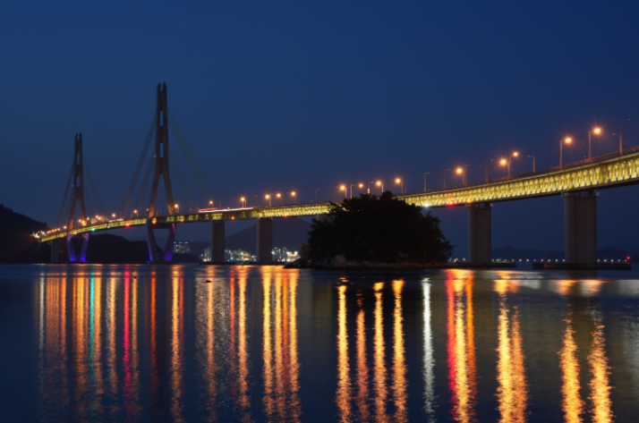 거금대교는 전남 고흥군 금산면의 거금도와 도양읍 소록리를 연결하며, 금빛으로 반짝이는 모습 덕분에 '금빛 대교'라는 별칭을 얻었습니다. 햇살에 반사되는 황금빛 광경은 그 자체로 감동을 주며, 이 다리는 단순한 교량을 넘어 사람과 사람, 마음과 마음을 이어주는 상징적 역할을 하고 있습니다. 거금대교는 고흥 주민들의 삶과 이야기를 담아내며, 그 주변의 해상 드라이브 코스는 우리나라에서 손꼽히는 청정한 드라이브 명소로 알려져 있습니다. 자동차뿐만 아니라 자전거와 도보로도 즐길 수 있어, 사랑하는 이와 함께라면 잊을 수 없는 추억을 만들 수 있는 곳입니다.