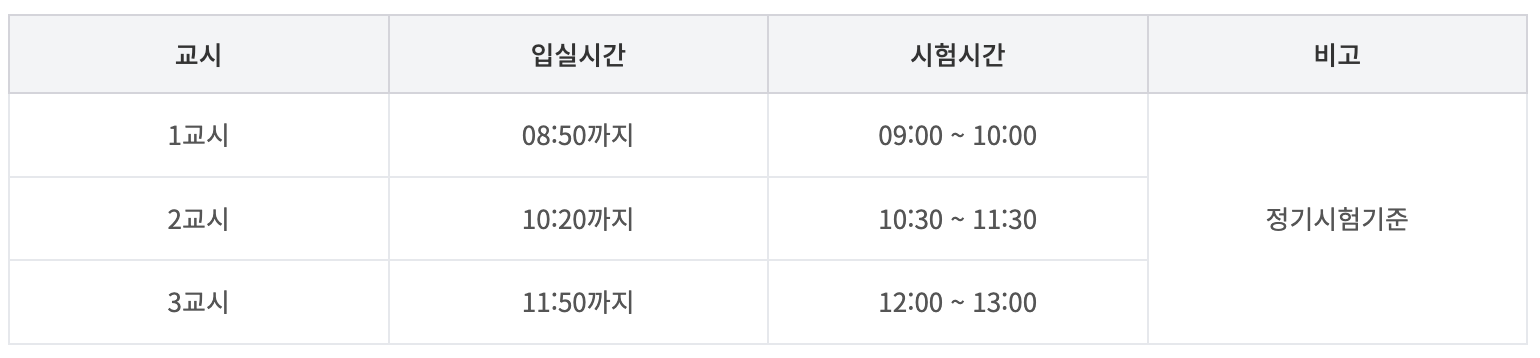 ※ 정기시험기준으로 시험일정에 따라 변경될 수 있습니다.