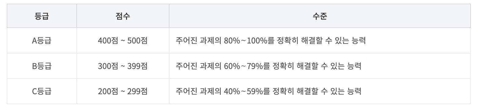 ITQ시험은 500점 만점을 기준으로 A등급부터 C등급까지 등급별 자격을 부여하며,