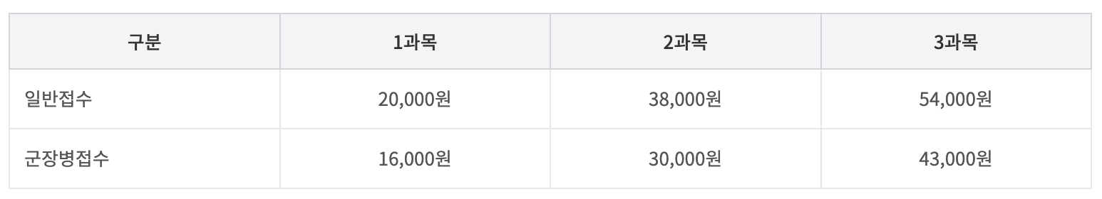 - 2020년 2월 정기시험부터 적용된 금액(2020년 1월 1일 이후)