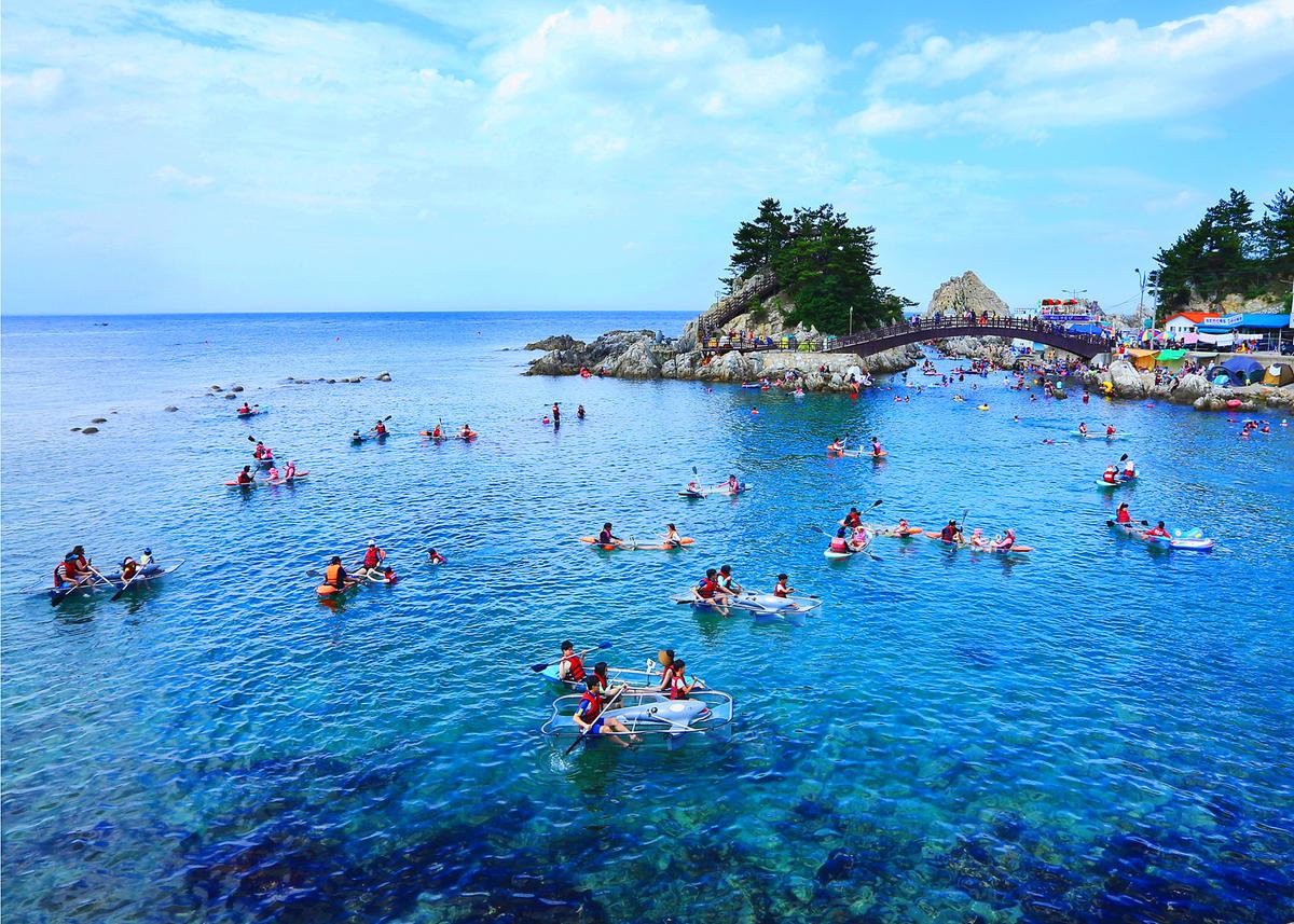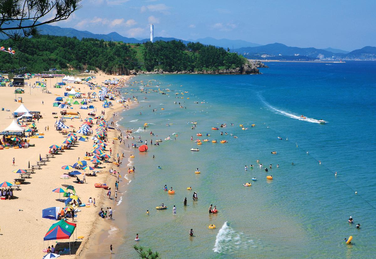 특히 주말에는 "환상의 해안선 기차여행"의 종착지로 많은 관광객이 찾는 명소입니다. 해변은 대규모 피서지로, 매년 50만 명 이상의 관광객이 방문하며 "맨손넙치잡기대회" 등 다양한 이벤트가 열려 큰 인기를 얻고 있습니다.