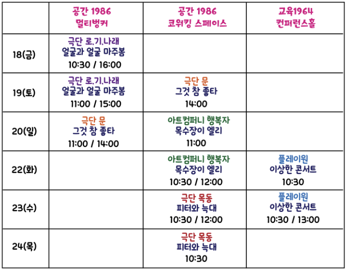일시: 2023.08.18 (금) ~ 08.24 (목)