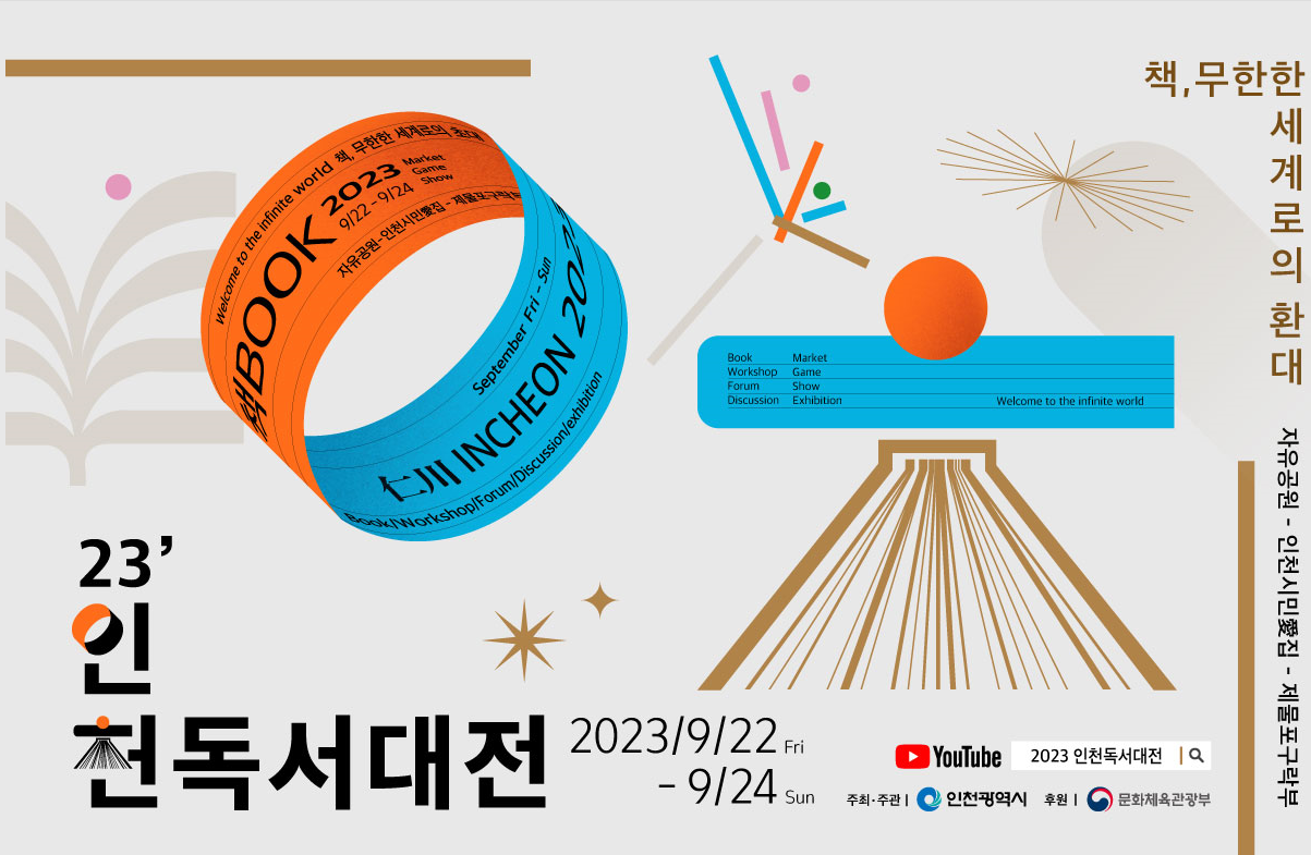 2015년 인천에서 개최된 「2015 대한민국 독서대전」 이후 6년만에 열린 「2021 인천 독서대전」을 시작으로 매년 여러분을 찾아갑니다. 도서관을 기반으로 서점ㆍ출판ㆍ문화ㆍ교육계 등 독서공동체가 유기적으로 연대하여 폭넓은 독서문화를 확산시키고자 추진하는 인천 대표 독서행사로서 책을 통한 성장과 치유를 지지합니다.
