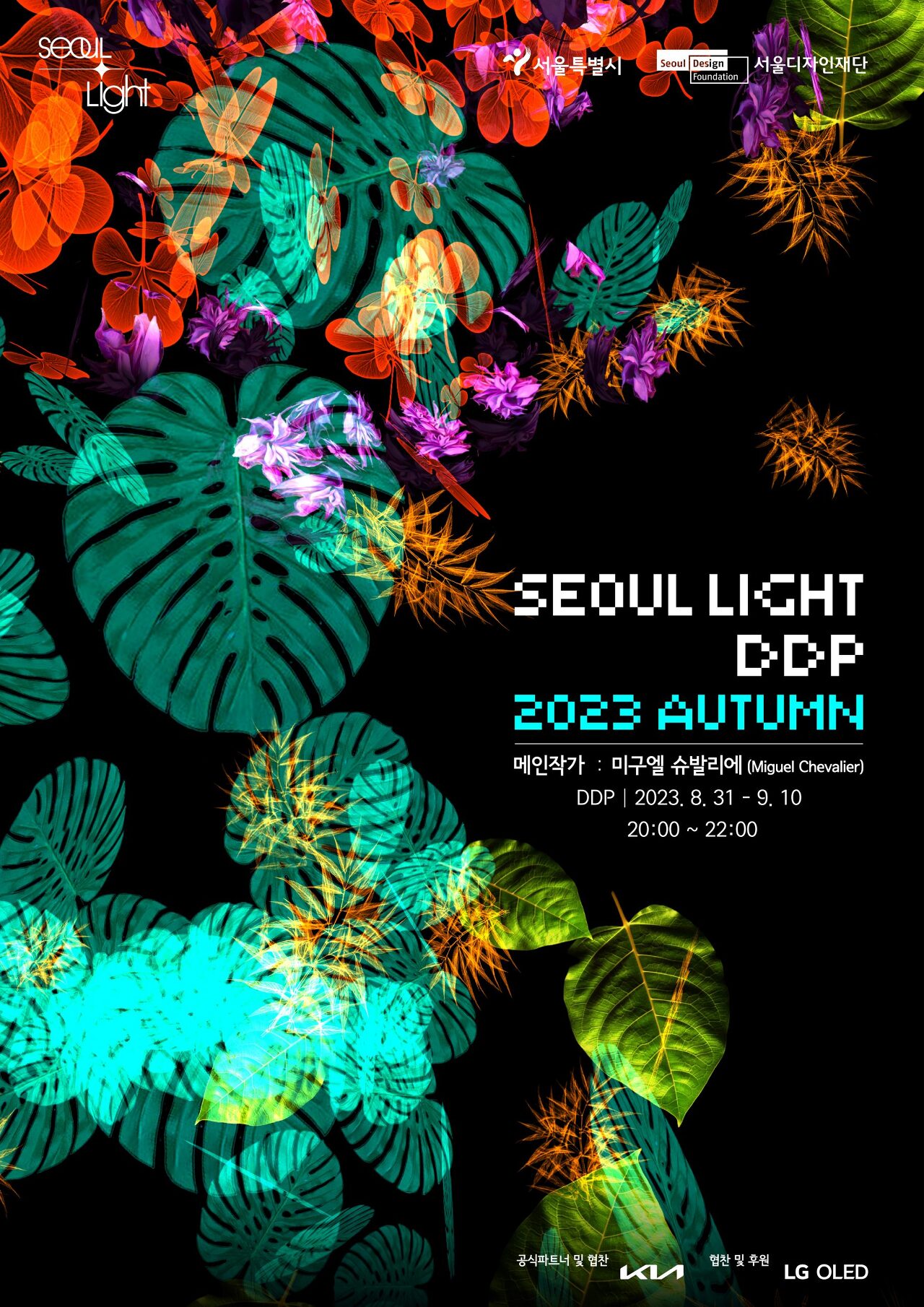 2019년 개막 이래 처음으로 겨울 뿐 아니라 가을밤 222m 메인 파사드 면을 이용해 서울 도심 한복판을 환하게 비춰주는 <서울라이트 DDP 2023 가을>!