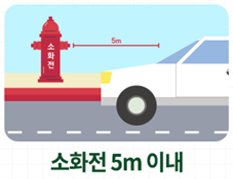 주정차금지 교통안전표지가 설치되어 있거나, 적색노면표시 소화전 주변 5M 이내의 정치 상태 차량