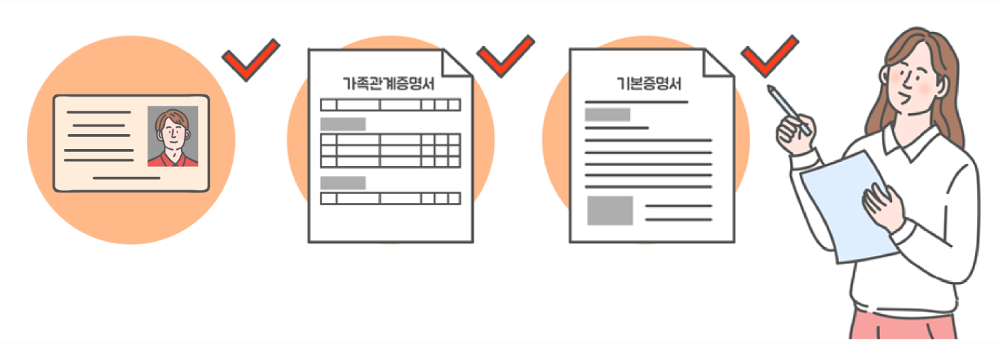 - 기본증명서, 가족관계증명서 등록으로 부모, 자녀 간 관계를 확인